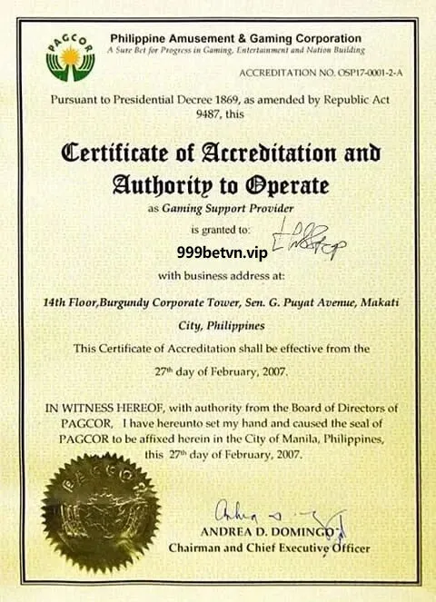 Về tính pháp lý, chúng tôi cũng đảm bảo tuyệt đối với giấy phép cấp bởi PAGCOR. Mọi tiêu chí đều góp phần tạo nên một điểm đến an toàn, minh bạch và chất lượng tuyệt đối.